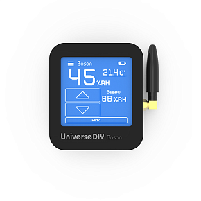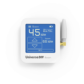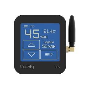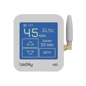 Основной зональный пульт HS5-W системы увлажнения воздуха Universe представляет собой беспроводной точный электронный гигростат с сенсорным дисплеем, который отображает заданную и текущую влажность. Заданная влажность может быть установлена пользователем на дисплее пульта, пульт передает информацию на центральный блок. На один центральный блок White Energy должен приходиться только один основной пульт HS5-W, который устанавливается в главном с точки зрения управления влажностью помещении.